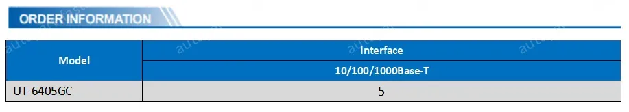 UT-6405GC is a 5-port full Gigabit unmanaged Ethernet switch, providing 5 1000Base-T Ethernet port, which supports -20~70°C operating temperature and good EMC performance, and also supports industrial standard DIN-rail mounting to ensure normal operation in harsh environments, so it is very easy to install and apply on any industrial network.