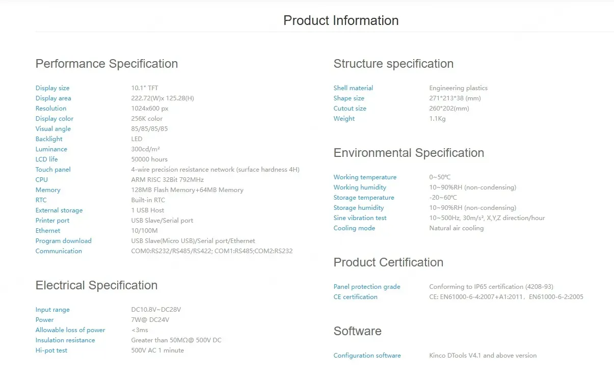 KINCO HMI MT100 10.1" TFT 1024x600 px