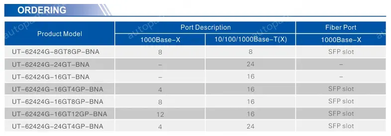 ● Supports multiple combination for Gigabit RJ-45 ports and fiber ports