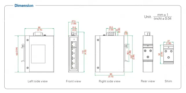 - Voltage input: 12/24/48VDC (10.8~52.8VDC), support reverse connection protection