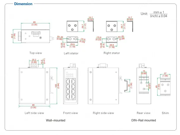 - Voltage input: 12/24/48VDC (10.8~52.8VDC), support reverse connection protection