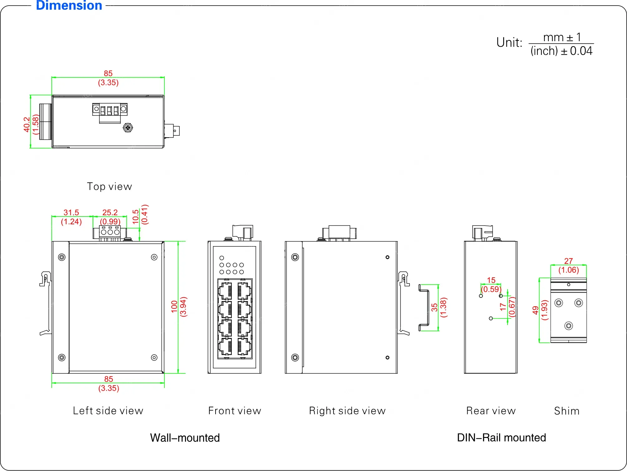 Dimension (W x H x D): 100mm x 85mm x 40.2mm