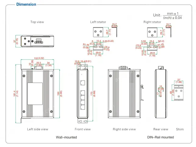 - Input voltage:12/24/48VDC(10.8~52.8VDC), supports reverse polarity protection