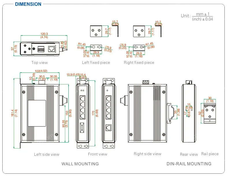 - Supports DIN-Rail and wall mounted installation